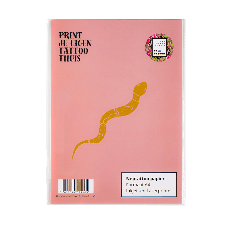 Tijdelijk tattoo papier is speciaal ontwikkeld om eenvoudig zelf tijdelijke tattoos te maken. Dit papier helpt mensen hun tattoo-ontwerpen te testen voordat ze een definitieve keuze maken. Het werkt simpel: ontwerp je tattoo, print het op het papier, breng een folie aan, knip de tattoo uit en plak het op je huid. Maak het nat met water, en je tijdelijke tattoo is klaar. Deze methode zorgt voor het meest realistische resultaat, waardoor je een ontwerp goed kunt testen.Een eenvoudige extra service die jou onderscheidt